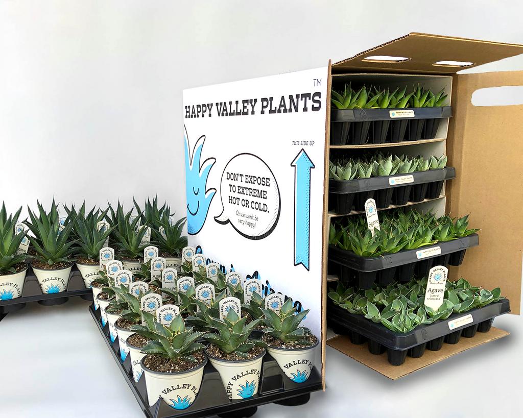 Our horticulture experts will determine if the plant needs to be shipped in soil, based on the particular species, size, and your hardiness zone. In general, agaves, cacti, and succulents will be shipped without soil, called “bare root.” (see below) We will find the best freight carrier to your address. While our top priority is a healthy, happy plant delivery, unfortunately, we have no control over how carriers handle our packages, nor where they are dropped off.