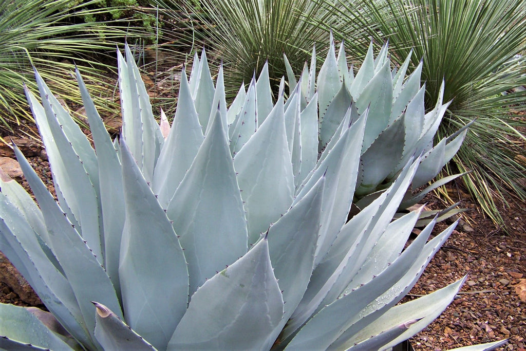 A beautiful, cold hardy Agave from the Sky Islands of southern Arizona. The leaves are lined with attractive reddish-brown to black teeth and a sharp terminal spine. These sought-after Agaves grow in populations in the Huachuca (Wah-choo-Ka) Mtns of Arizona within the Coronado Ntl. Forest. They are adapted to different soil types, but like other Agaves, they perform best in well-drained, loose gravely soils, especially in wetter regions. This variety grows larger than other A. parryi types. Their powder blue color stands out when planted with other perennials, shrubs or other accent plants. Note: In low deserts or hotter inland landscapes, the Hauchuca Agave benefits from afternoon shade.